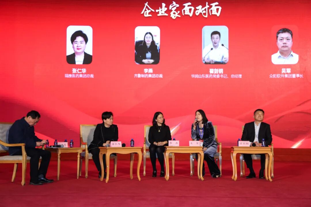 “名医名科名院高端对话”第三场企业家面对面篇高端对话,于2018年10月27日在济南举办,由山东省健康管理协会,山东省现代医院管理研究院主办。在山东省千佛山医院党委书记、院长孙洪军主持下,邀请齐鲁制药集团总裁李燕、瑞康医药集团总裁张仁华、众阳软件集团总裁王爱、华润山东医药党委书记、总经理翟剑钢围绕“改革开放四十周年,知名企业发展与展望”展开交流。