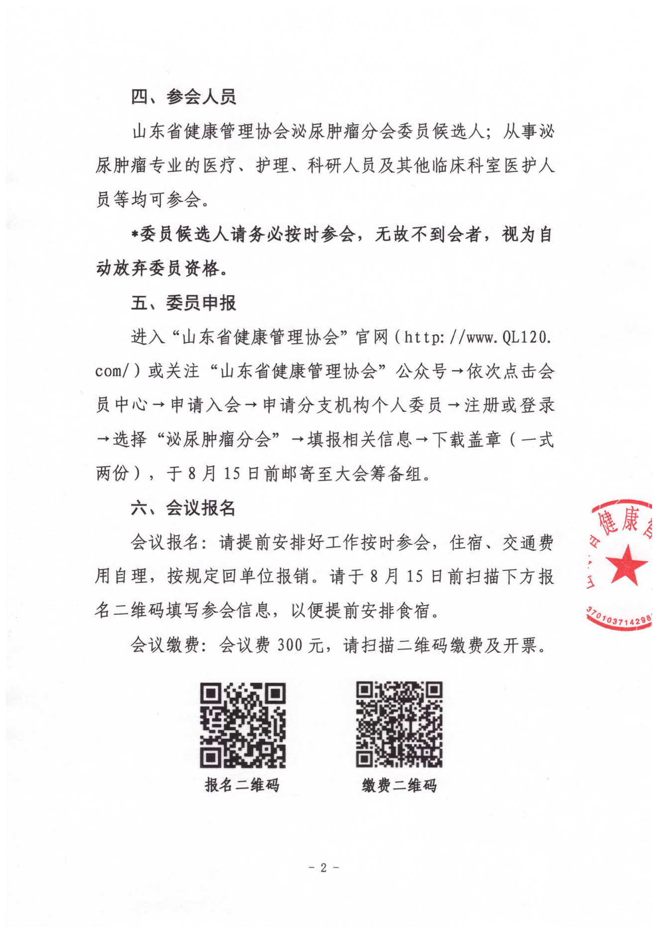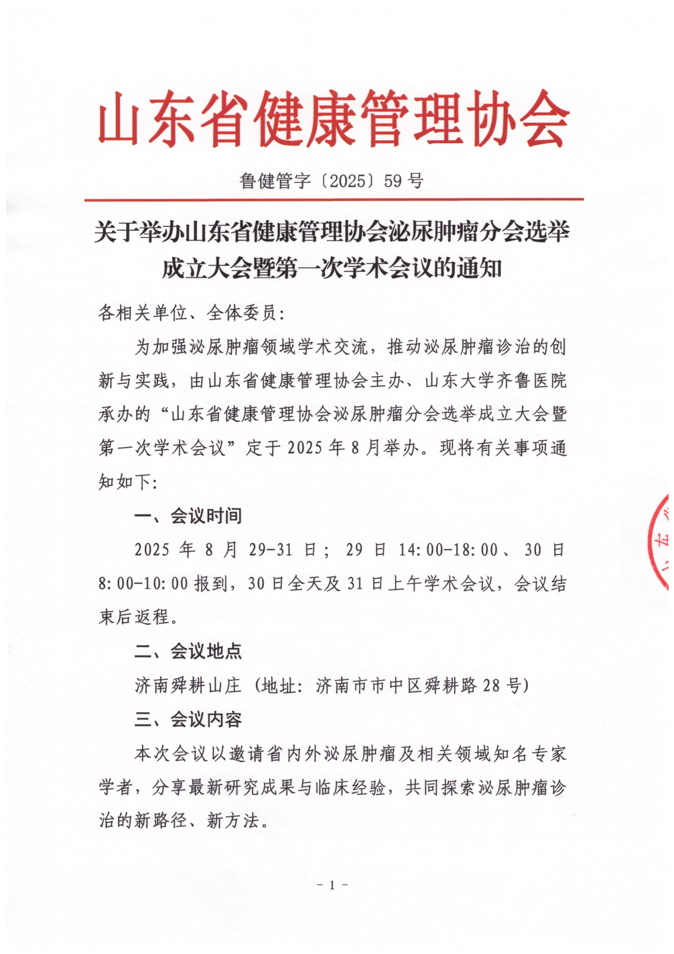 关于举办山东省健康管理协会泌尿肿瘤分会选举成立大会暨第一次学术会议的通知